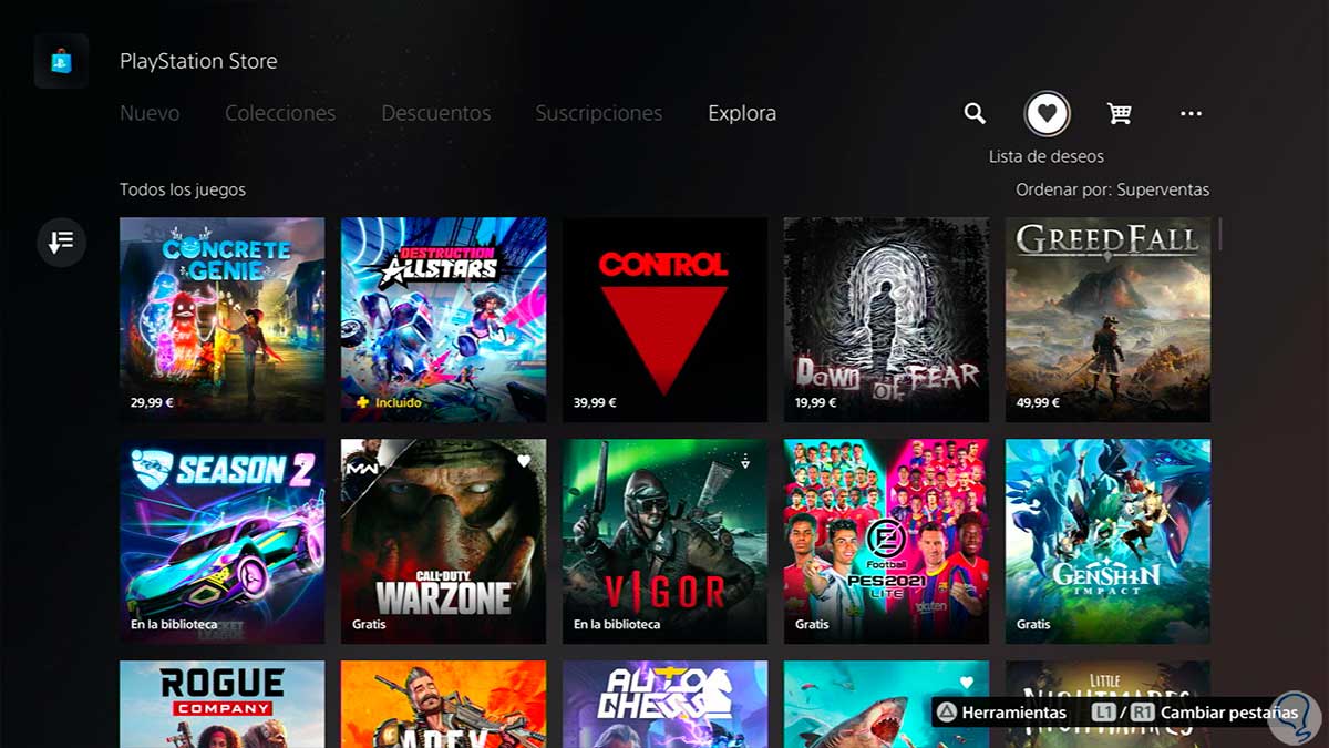 La lista de deseos en nuestra PS5 nos ayuda a tener localizados los juegos que nos gustan o que nos gustaría tener en nuestra consola. Esta lista de deseos con nuestros videojuegos preferidos, podrá después ser compartida con nuestros amigos si queremos. Esto es útil ya que puede ser que nos interese un juego concreto, pero con el paso del tiempo de nos olvide su nombre, por ello con esta lista podrás tenerlos guardados.
