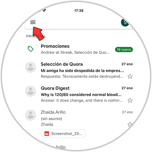 Lo primero que debes hacer es entrar en tu cuenta de Gmail y pulsar sobre el menú superior de las tres rayas.