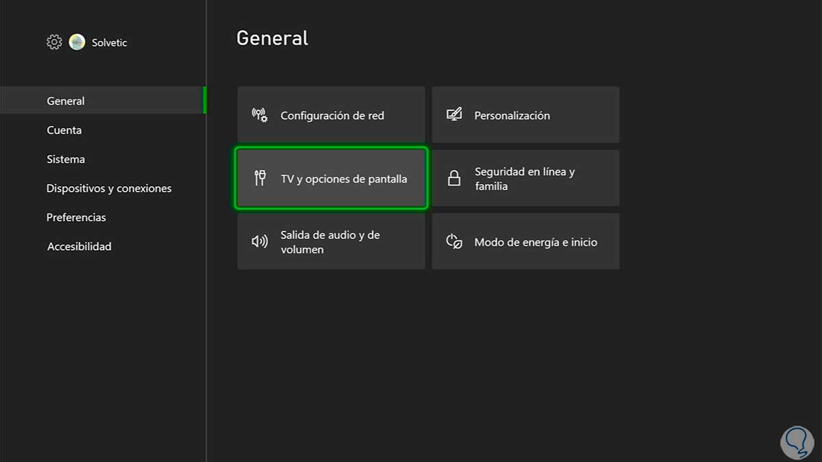 Ahora vamos a " General - TV y opciones de pantalla"