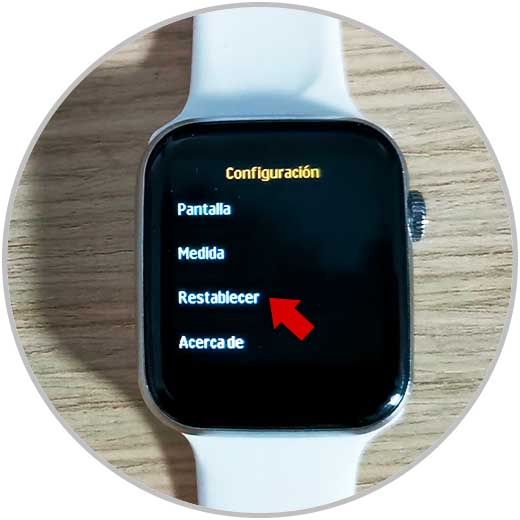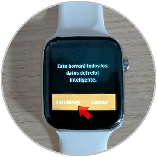 Confirma en "Restablecer" y el reloj se restablecerá de fábrica.
