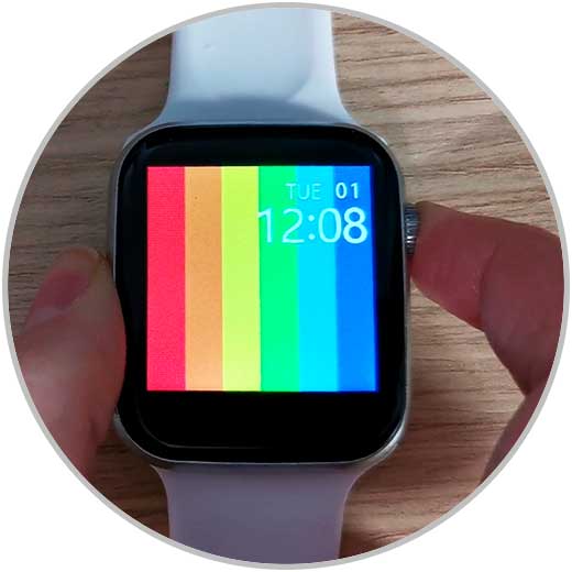 Verás que el reloj se apaga y después se vuelve a encender, en el logo podrás soltar el botón