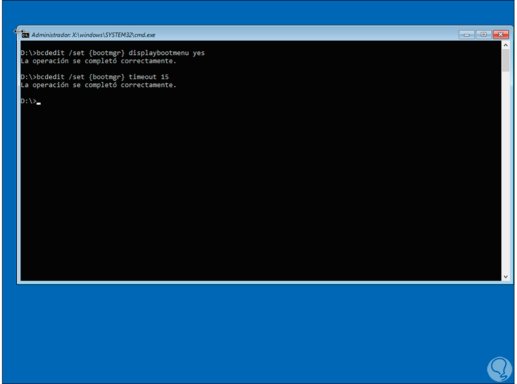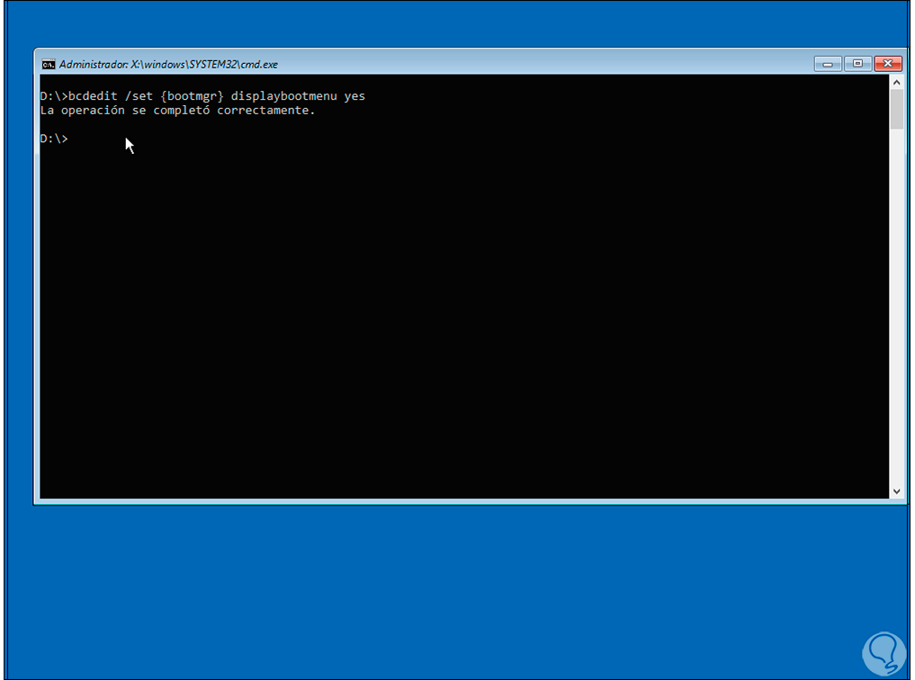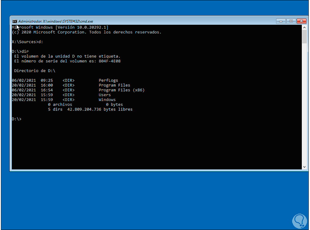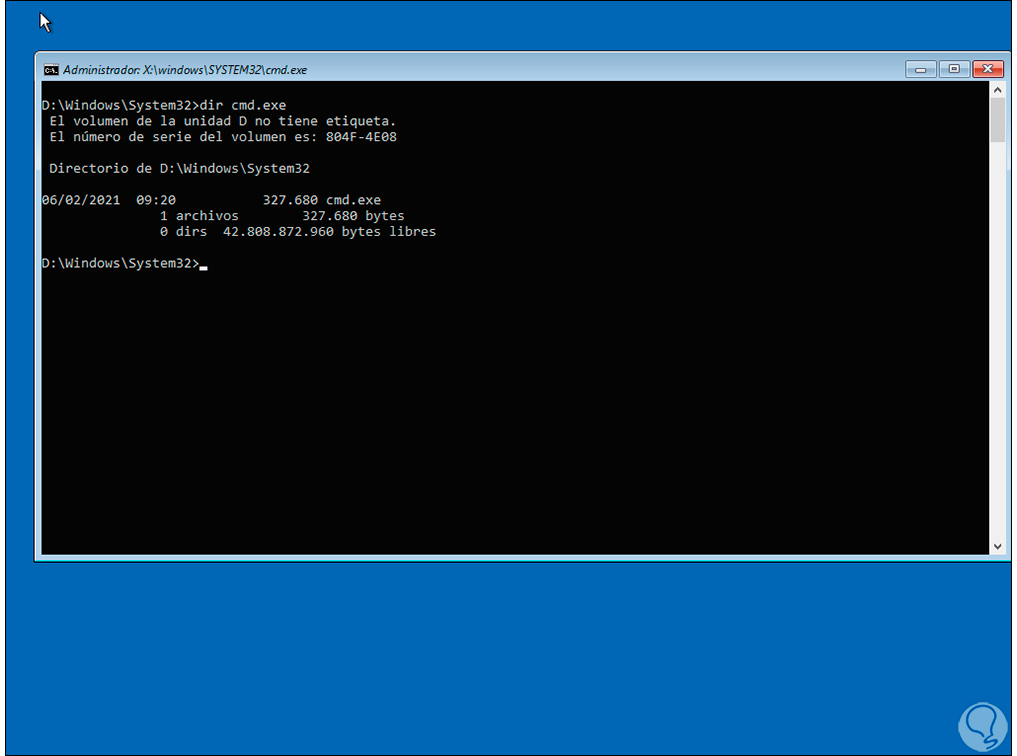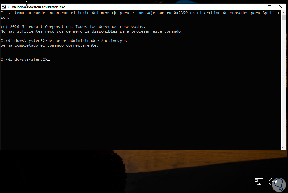 Al dar clic allí se abrirá una consola de CMD, allí habilitamos el usuario Administrador: