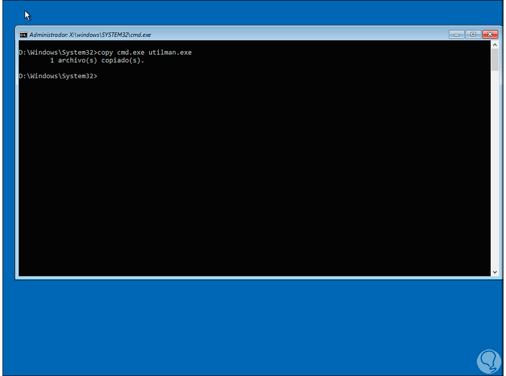 Ahora vamos a copiar CMD hacia Utilman con el comando: