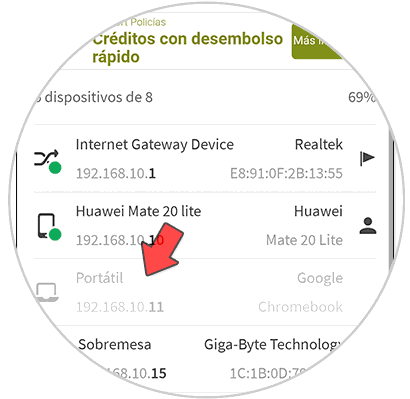 En la primera línea siempre veremos nuestro router, hacia abajo vemos los diferentes dispositivos, en este caso vemos dos dispositivos que no son nuestros, el móvil Samsung y el dispositivo Chromebook.