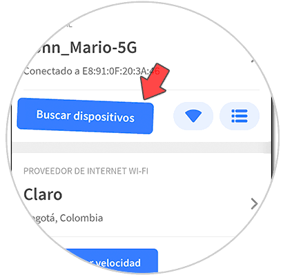 En la parte superior encontramos el nombre de la red Wi-Fi y su dirección MAC, pulsa en "Buscar dispositivos" para iniciar la búsqueda en la red: