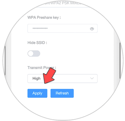 Cambia la contraseña de la red Wi-Fi y aplica los cambios pulsando en Apply: