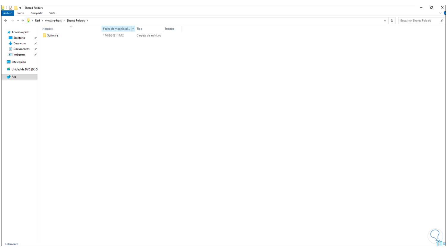 Clic en OK para aplicar los cambios y comprobamos la carpeta compartida desde el Explorador de Windows Server: