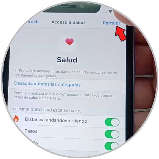 Lo siguiente que debes hacer es entrar dentro de la aplicación y verás que te pide permisos la app de salud de iPhone. Debes permitirlos.
