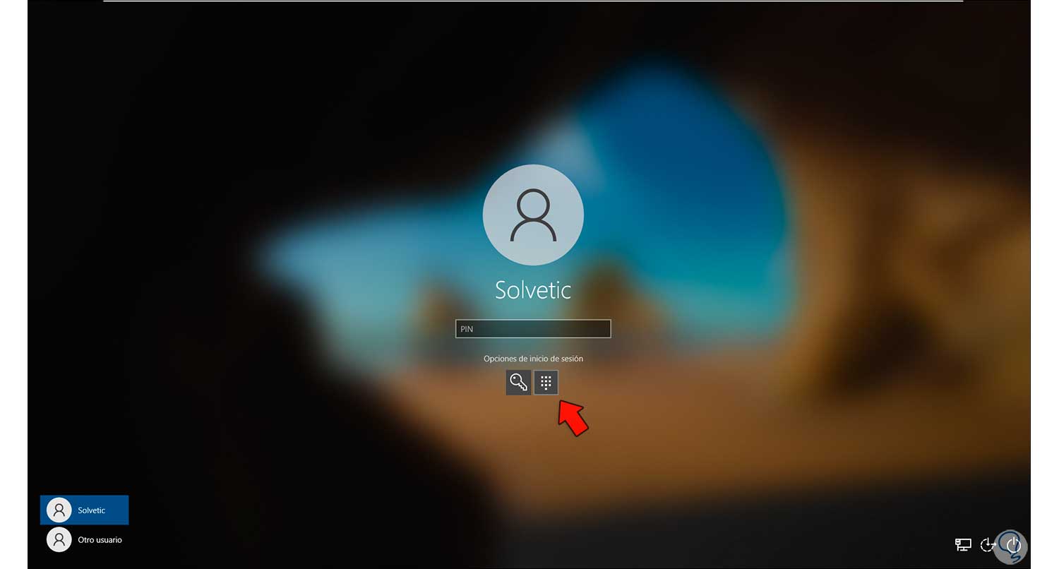 Cerramos sesión y en la pantalla de bloqueo seleccionamos el ícono de PIN: