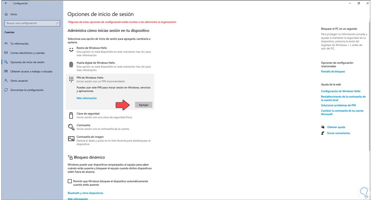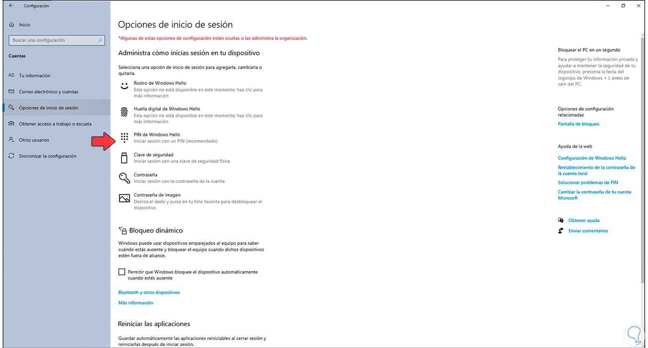 En Cuentas vamos a "Opciones de inicio de sesión":