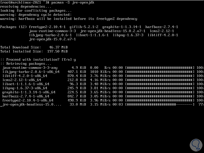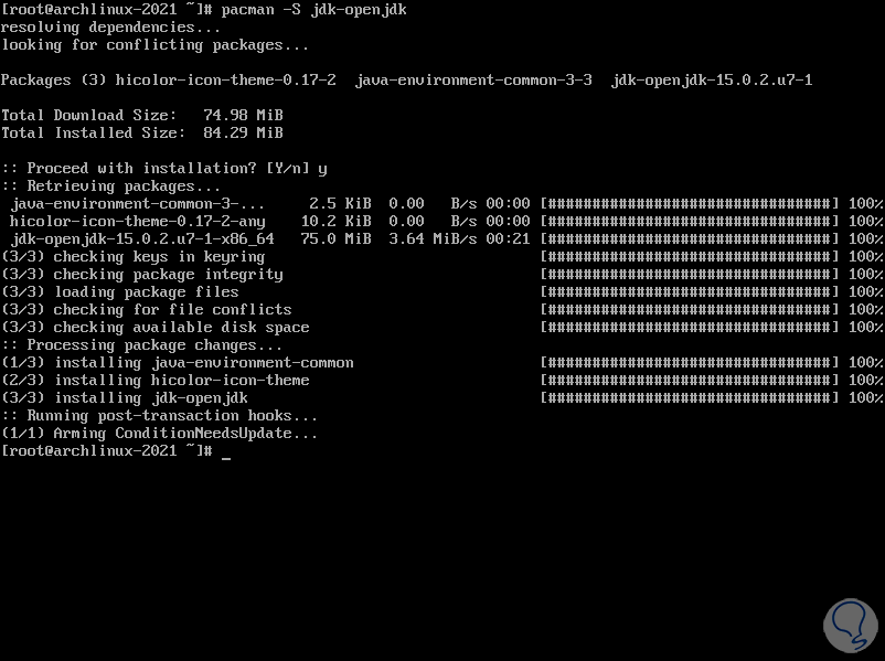 Vemos que ahora contamos con la última version de Java en Arch Linux.