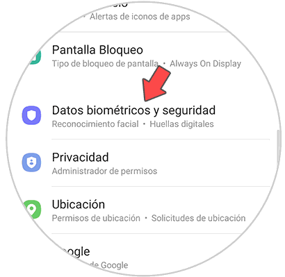 A continuación debes acceder al apartado de "Datos biométricos y seguridad"