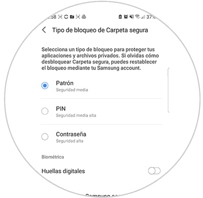 Verás varias opciones disponibles como método de bloqueo para las aplicaciones. Selecciona el que quieras usar.