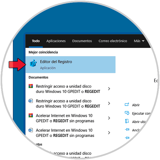 Para llevar a cabo esto vamos a abrir el Editor de registros desde Inicio: