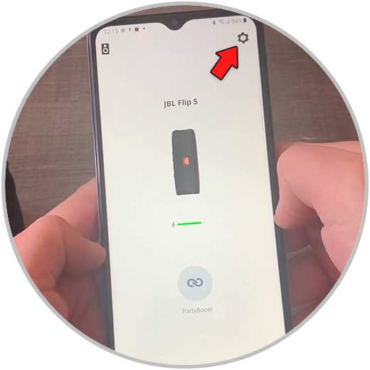Ahora entra en el JBL Flip 5 y pulsa en el engranaje arriba a la derecha dentro de la app.