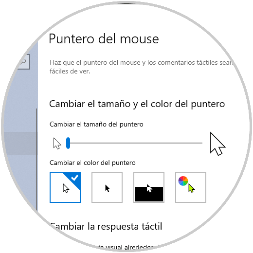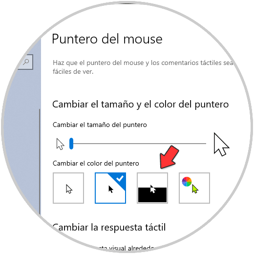 En Accesibilidad, vamos a la sección "Puntero del mouse" donde veremos de forma predeterminada lo siguiente: