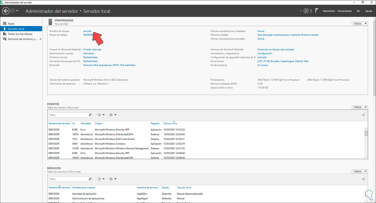 Cómo cambiar el nombre al servidor Windows Server 2022