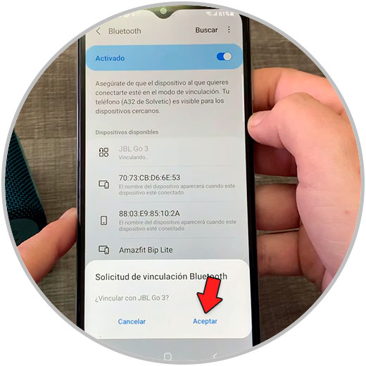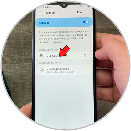 A continuación desliza la pestaña de bluetooth activa, y cuando aparezca GO 3 en el listado debes pulsar.