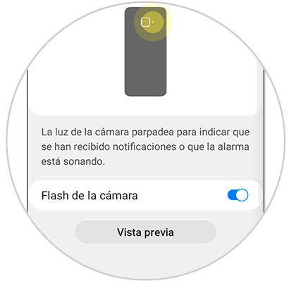 Aquí veremos que tenemos la opción de “Flash de la cámara” que podemos activar y que consiste en que se active el flash de la cámara trasera cuando tengamos una notificación nueva.