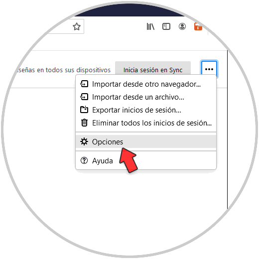 En la ventana desplegada, iremos al menú contextual y allí seleccionamos "Opciones":
