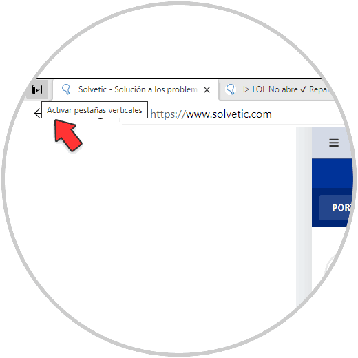 Después de esta validación, en la esquina superior izquierda de Edge damos clic en "Activar pestañas verticales":