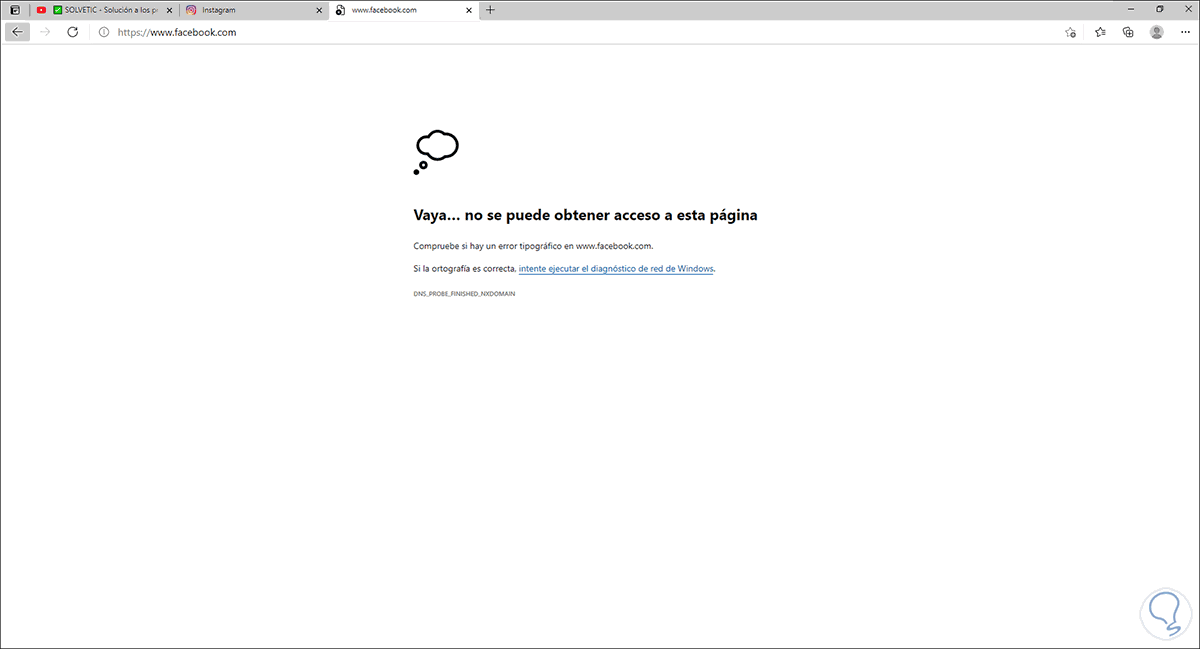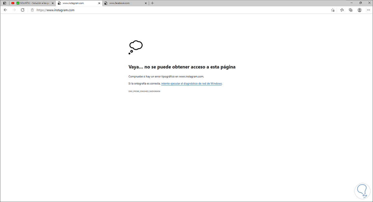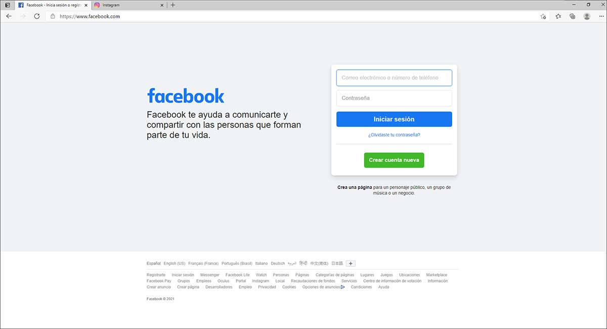 Lo primero es comprobar que es posible acceder a estos sitios web. En este caso probamos Facebook e Instagram.