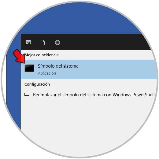 Es posible también acceder al símbolo del sistema desde Inicio: