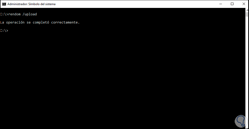 Ahora ejecutamos "rendom /upload" para actualizar esta información: