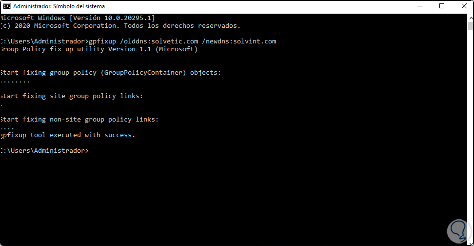 gpfixup /olddns:"dominio anterior" /newdns:"dominio nuevo"