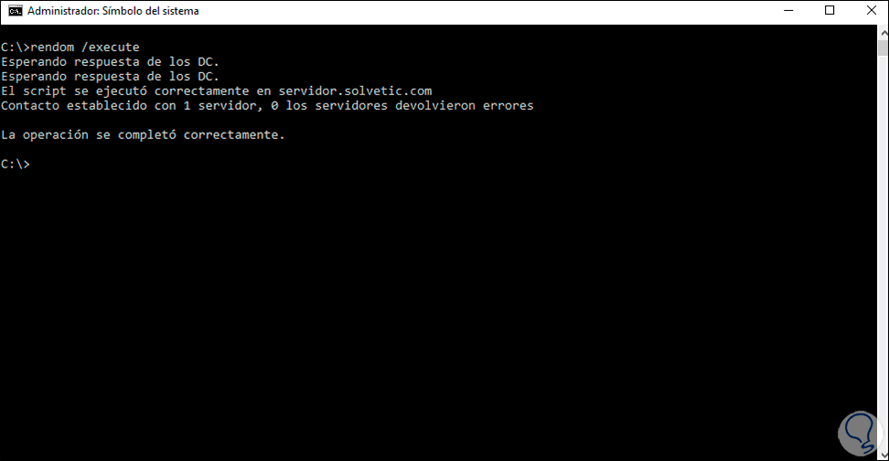 Podemos ver que se obtiene respuesta correcta por parte de los controladores de dominio, ahora llevamos a cabo la acción de cambio, para ello ejecutamos:
