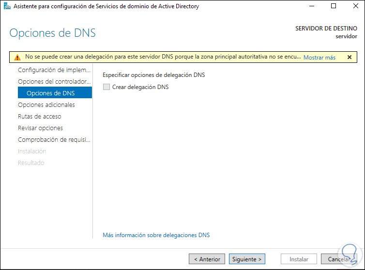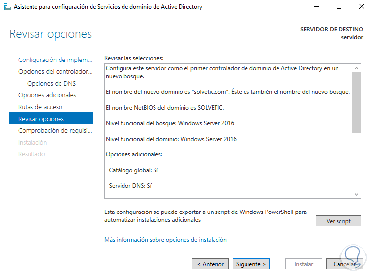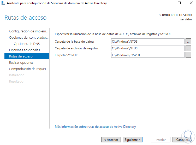 Damos clic en Siguiente para ver el nombre NETBIOS del servidor:
