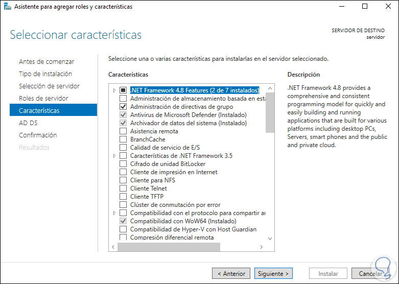 Damos clic en Siguiente para ver un resumen del rol a instalar: