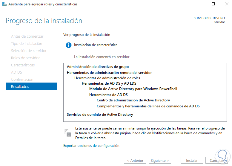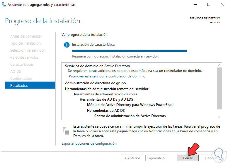 Al finalizar la instalación del rol veremos lo siguiente: