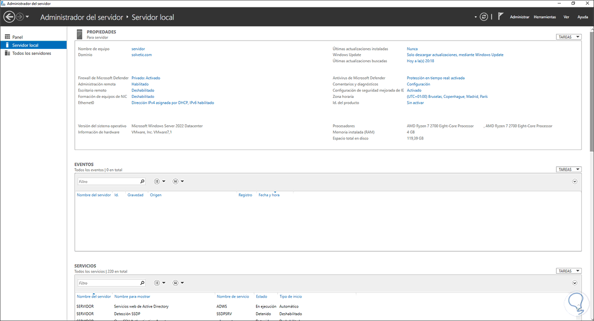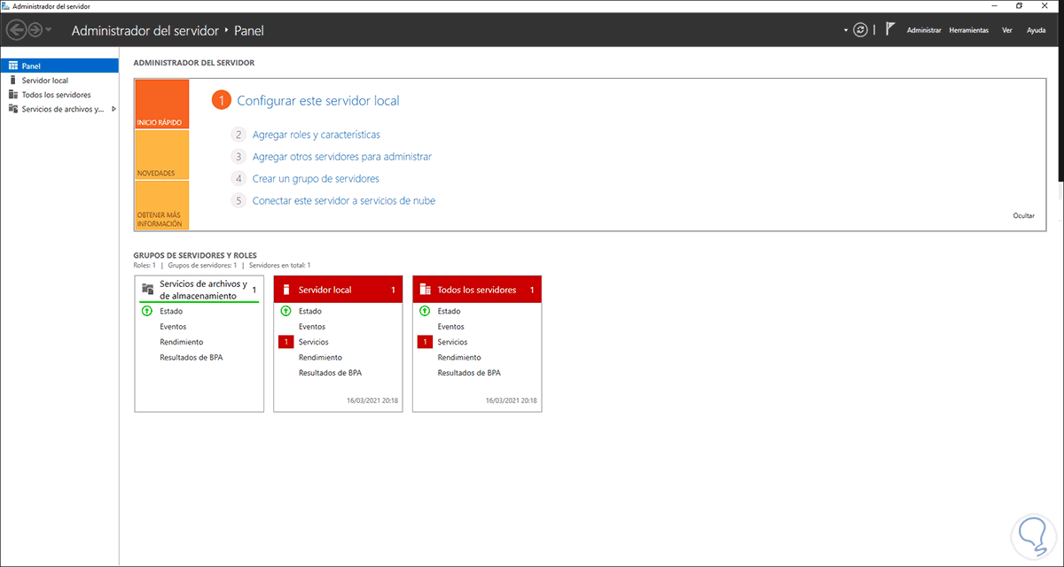 Abrimos el Administrador del servidor, veremos lo siguiente: