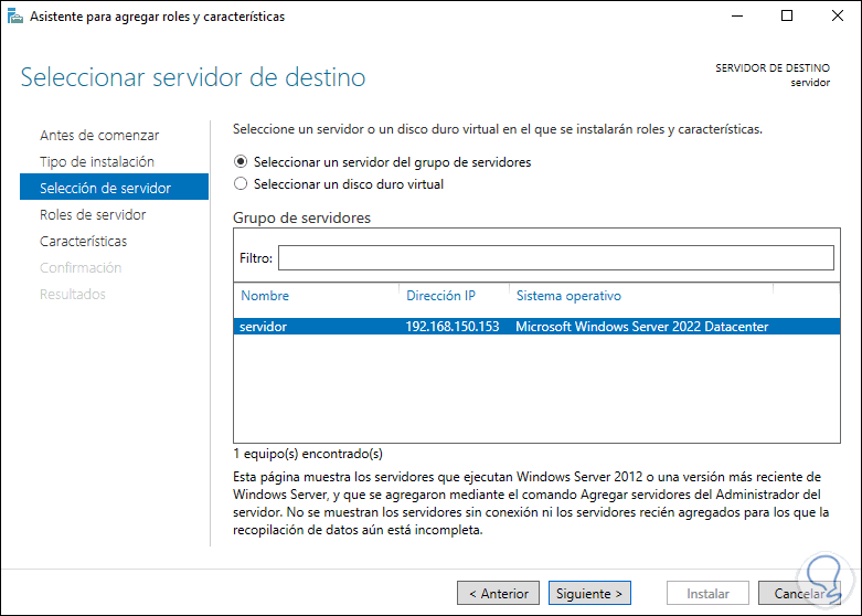 En la siguiente ventana veremos un resumen del rol a instalar en Windows Server 2022: