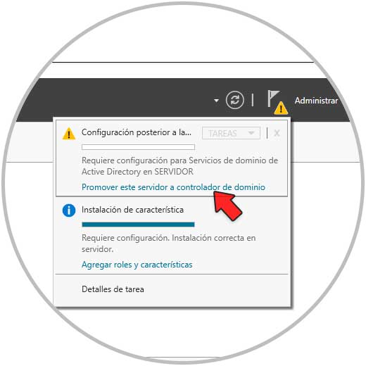 Damos clic en Cerrar, después de esto en la parte superior damos clic en "Promover este servidor a controlador de dominio":